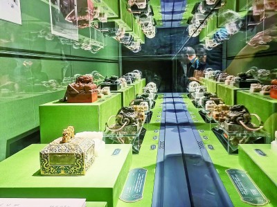“百年守护——从紫禁城到故宫博物院”展上,观众在欣赏二十五宝玺。本报记者 李韵摄/光明图片